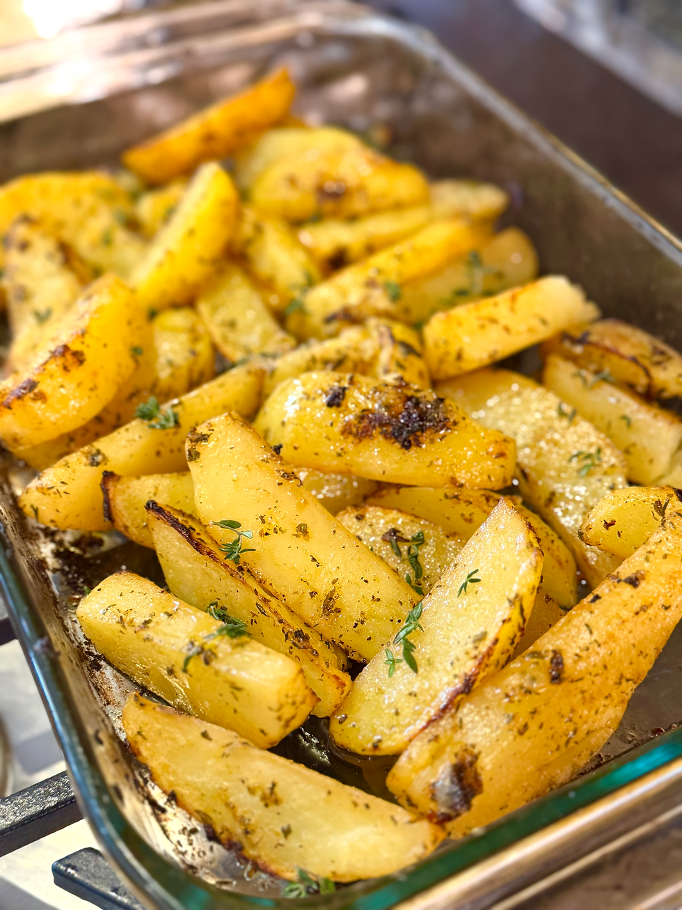 4-5 large potatoes, peeled and cut into wedges (1 large potato serves 2 people)